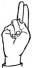На ћирилици написано ДРАГОМИР КЛИНЦОВ састоји се из 15 слова [?]. Исписано ћириличном једноручном азбуком за глувонеме: